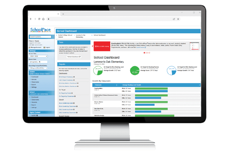 SchoolPace® empowers teachers with a complete progress monitoring suite. SchoolPace gives teachers the tools to identify each learner’s next step, group students for targeted intervention, and monitor progress over time—all in one place. By streamlining progress monitoring into a single, intuitive platform, SchoolPace helps teachers focus less on managing data and more on accelerating student learning.