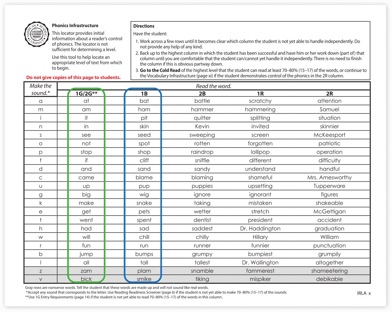 The teacher uses the IRLA's Phonics Infrastructure to screen every student for Phonics Gaps. Let's go over what happens with Student A.